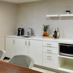 Guests can work out in a gym facility during their stay.