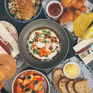 Het ontbijt wordt er elke ochtend in de bar aangeboden. Restaurant Moer bevindt zich ter plekke en biedt een verscheidenheid aan Nederlandse gerechten.